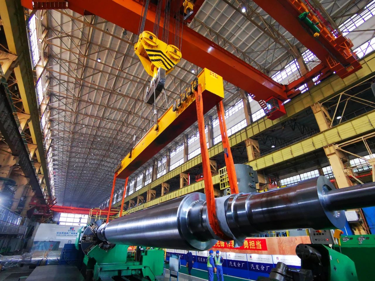 電機公司操作人員正在對內蒙古上海廟2號汽輪發(fā)電機轉軸進行加工。