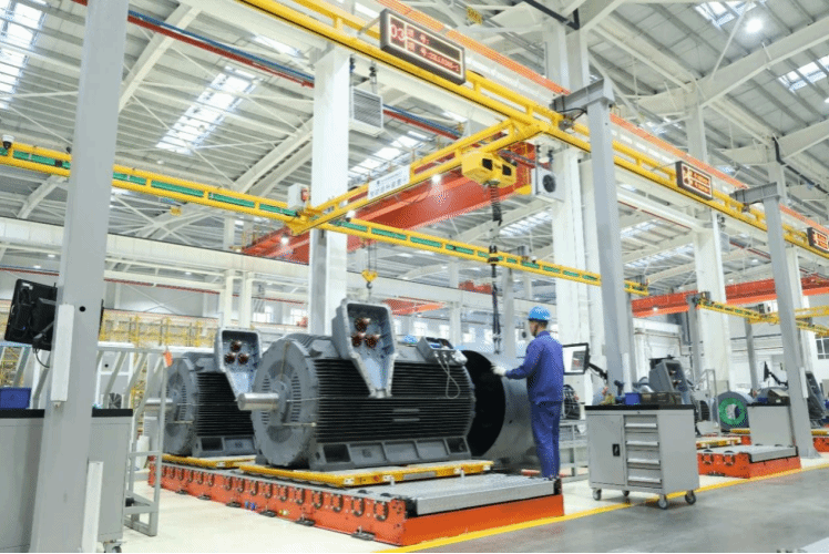 ★哈電集團(tuán)高壓電機(jī)數(shù)字化裝配車(chē)間操作者正在使用KDK吊車(chē)進(jìn)行裝配。